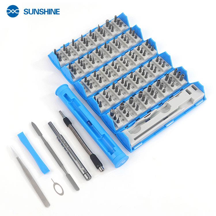 SUNSHINE SS-5120 128 in 1 Precision Screwdriver Set is a professional-grade toolkit designed for mobile phone, laptop, gaming console, and electronics repair. Engineered with 128 carefully selected S2 alloy steel bits, this all-in-one set ensures durability, toughness, and precision for handling delicate components without risk of damage. Its scroll-style innovative storage box allows easy organization, compact portability, and quick access to the right tool whenever needed.