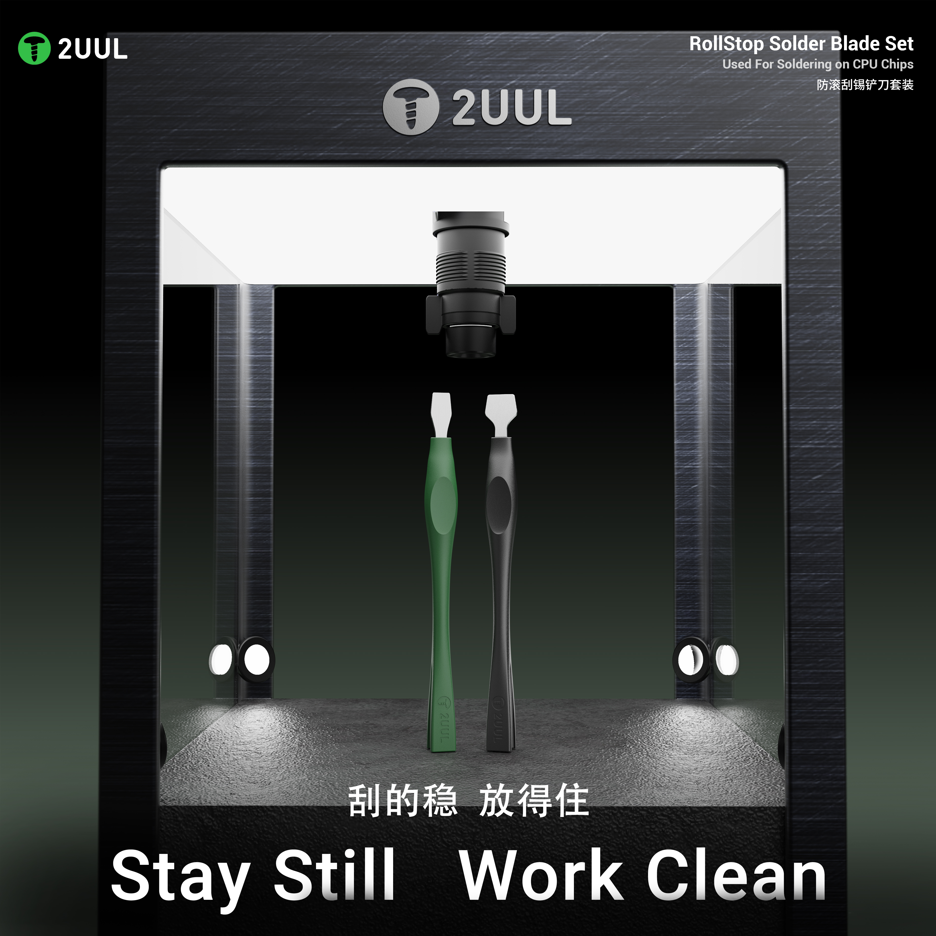 The 2UUL DA19 RollStop Solder Blade Set is a premium-quality soldering accessory designed for high-precision electronic repair. With durable stainless-steel blades and a unique RollStop anti-slip handle design, this set provides technicians with maximum control, stability, and accuracy during soldering, cleaning, scraping, and detailed board work.