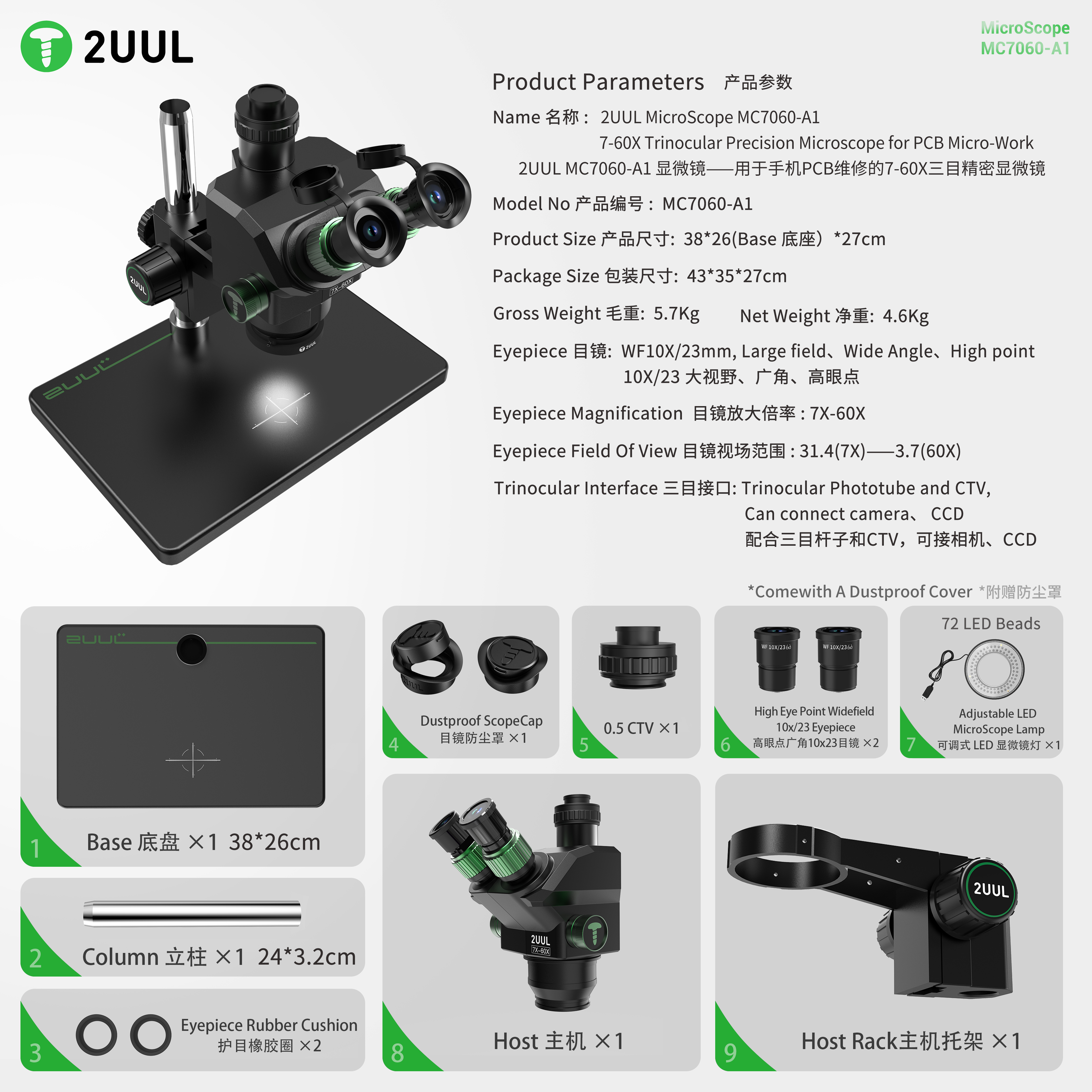 The 2UUL MC7060-A1 is a high-performance 7–60X trinocular microscope engineered for mobile repair technicians, laboratories, educational institutes, and precision electronics work. Designed for long working hours and maximum detail clarity, it provides sharp, distortion-free imaging that enhances productivity and accuracy.