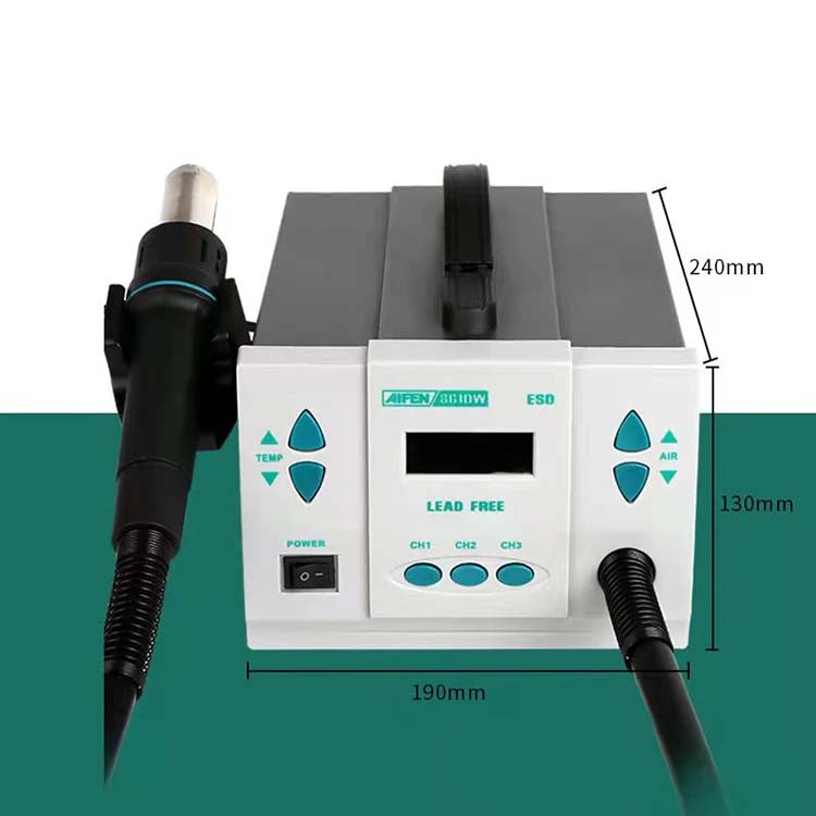 AIFEN 861DW Smart Desoldering Station is a high-performance hot air soldering tool designed for professionals who demand speed, accuracy, and reliability in electronics repair. Built with advanced ESD-safe technology and 700W of powerful heating, it delivers consistent airflow and rapid heat recovery, making it ideal for CPU, BGA, motherboard, and PCB chip repair.