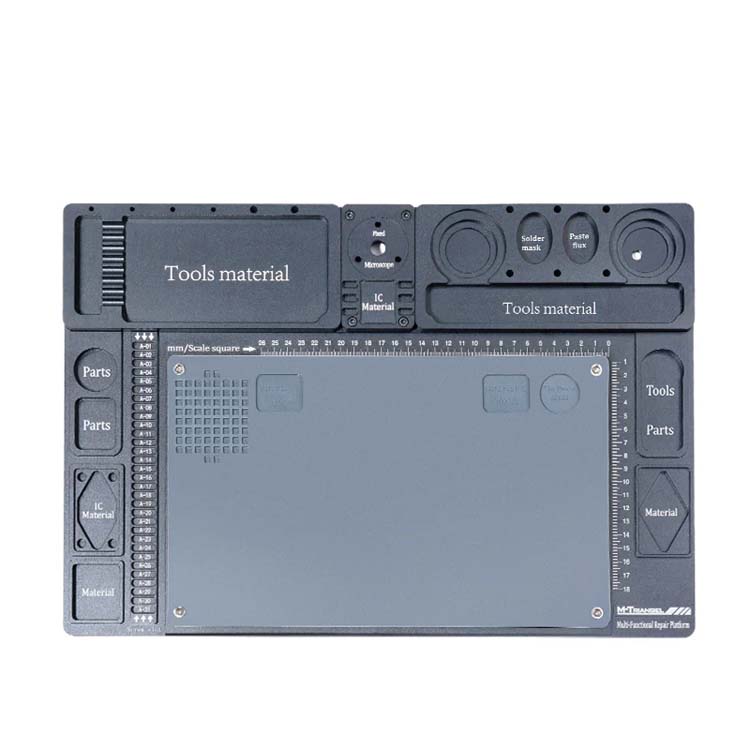 M-triangel DP-101 Multifunctional Repair Platform is the ultimate workstation base for mobile phone, tablet, and electronics repair professionals. Crafted from high-quality aluminum alloy, this platform offers a stable, durable, and anti-slip surface to keep your work organized and efficient. Designed specifically for stereo and video microscopes, the DP-101 features a large working area with a precision scale ruler, multiple parts compartments, and dedicated slots for screws, IC materials, and repair tools – helping you maintain order during even the most complex repairs.