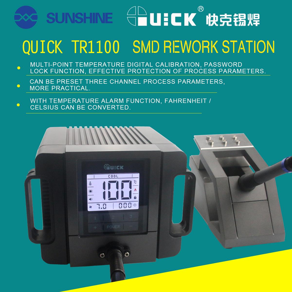 The QUICK TR1100 Intelligent Lead-Free Rework Station is a professional-grade hot air rework solution designed for modern electronics repair, SMD rework, and BGA soldering. Built with advanced digital calibration and precision airflow control, it delivers consistent, stable, and safe performance, making it the ideal choice for technicians, repair labs, and production lines.