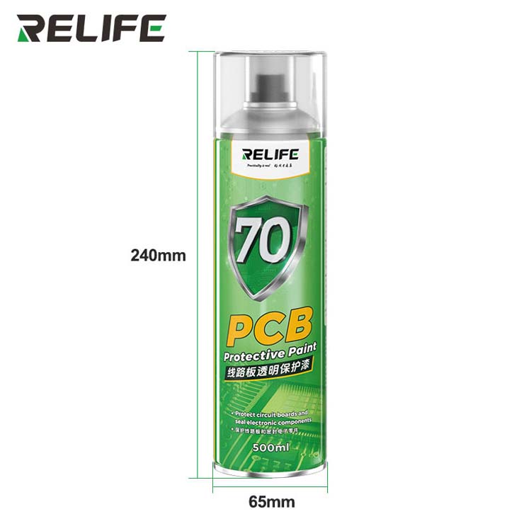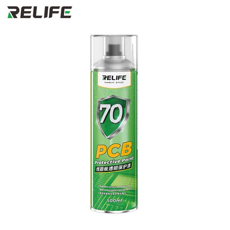 RELIFE 70 Circuit Board Protective Paint is a professional-grade transparent insulation coating designed to protect PCB boards, cables, and electronic components from moisture, dust, corrosion, and accidental short circuits. Its quick-drying formula makes it perfect for mobile phone repair, motherboard maintenance, and other precision electronics work.