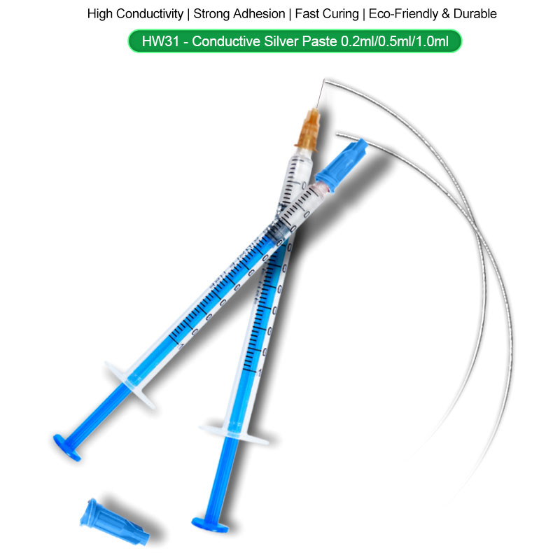 Conductive Silver Paste HW31 is a high-performance, fast-curing conductive material designed for precise electronic applications. Manufactured by Foshan Xinheng Technology Co., Ltd, this paste delivers excellent conductivity, strong adhesion, and stable performance, making it ideal for circuit repair, electronic bonding, and various industrial uses.