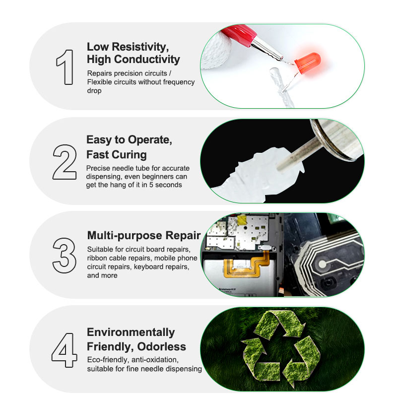 Its optimized formulation ensures reliable conductivity even under high temperatures, mechanical stress, and long-term use—perfect for professional technicians, electronics workshops, and manufacturing environments.