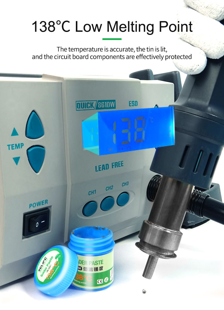 The RELIFE RL-404 138°C Low Temperature Solder Paste is specially designed for delicate electronic soldering tasks where heat sensitivity is a concern. With its low melting point of 138°C, it ensures safe, stable, and efficient soldering without damaging nearby components. Ideal for mobile repair, motherboard maintenance, micro soldering, and SMD/IC rework, this solder paste delivers high reliability and smooth application.
