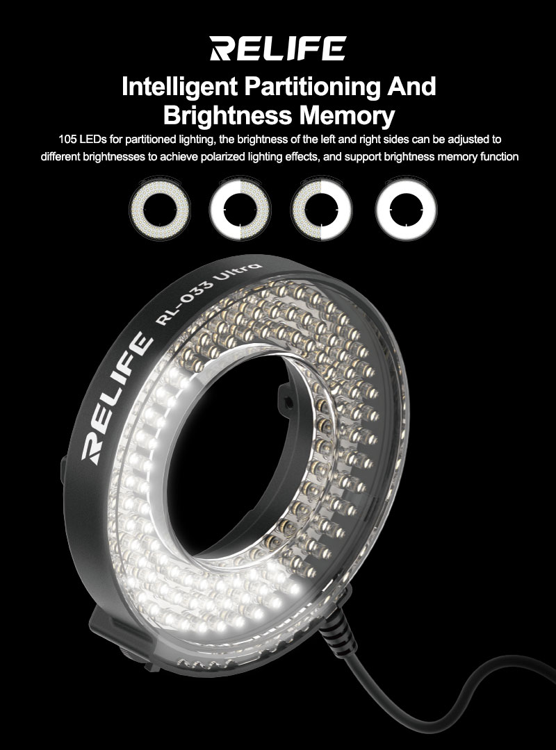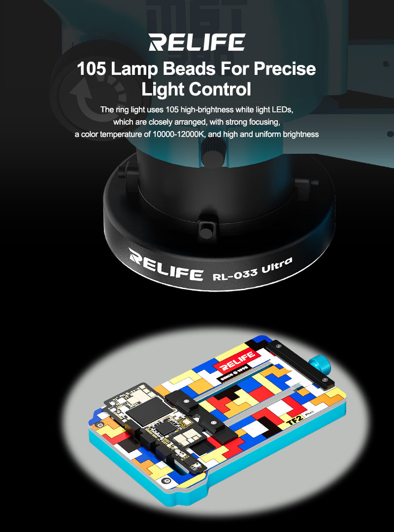 The RELIFE RL-033 Ultra Microscope LED Ring Light is designed to deliver bright, uniform, and shadow-free illumination for high-precision repair tasks. Whether you’re performing micro-soldering, PCB inspection, IC analysis, or delicate board work, the RL-033 Ultra ensures crystal-clear visibility and accuracy under your microscope.