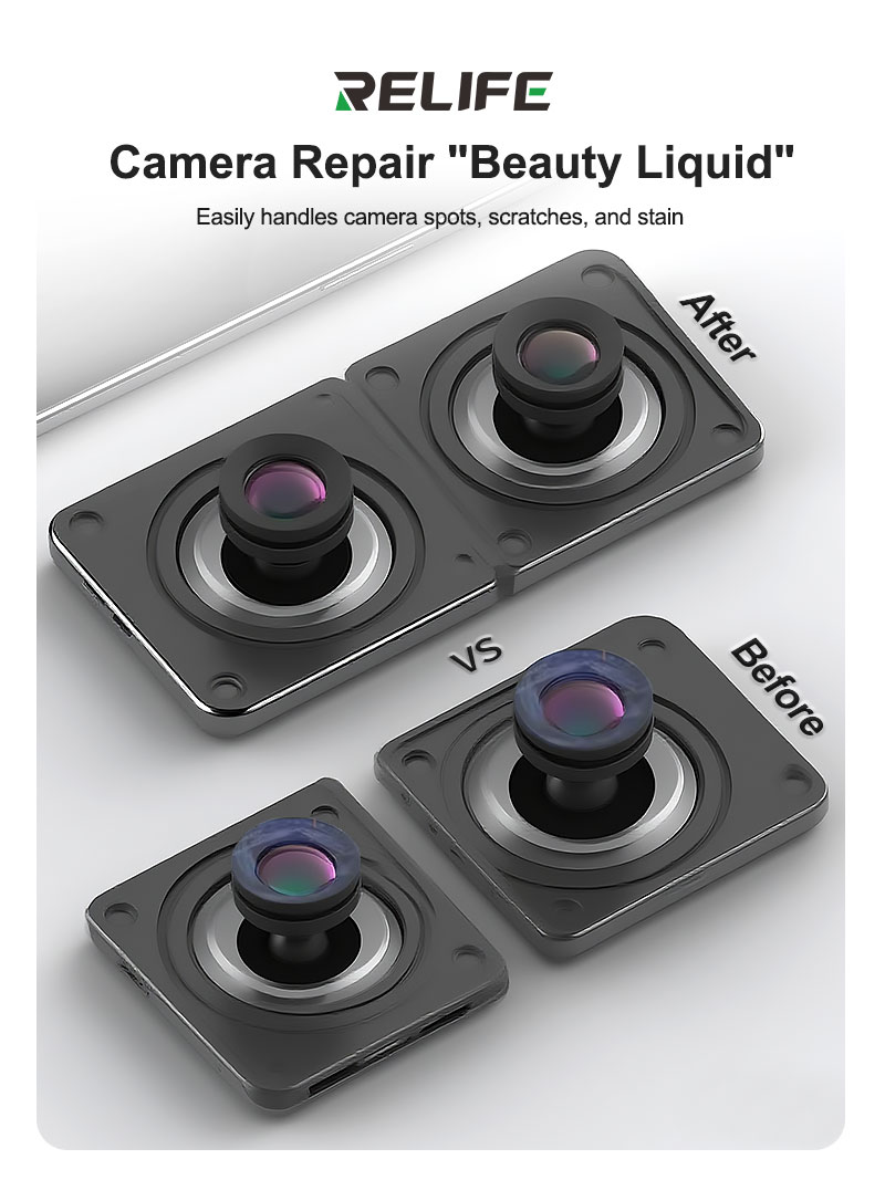 The RELIFE RL-035Q Camera Aperture Blue Light Repair Liquid is engineered for professional mobile phone repair technicians who deal with foggy, blurry, or blue-hazed smartphone cameras. Modern phone cameras often suffer from moisture, oxidation, lens haze, or blue-light refraction issues, leading to poor picture quality. RL-035Q effectively restores camera clarity and normal aperture performance.