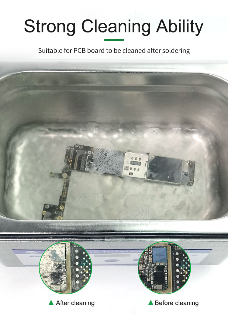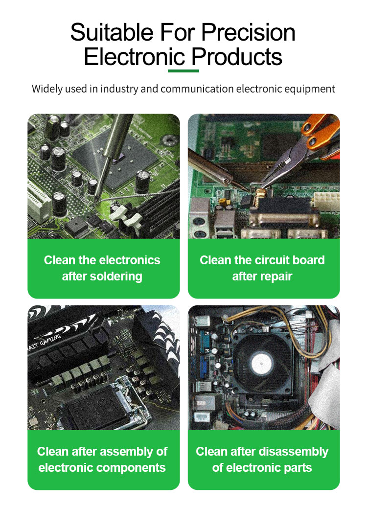 Whether used for pre-repair cleaning, post-soldering maintenance, or general PCB hygiene, this solution provides technicians with a dependable, safe, and efficient cleaning experience.