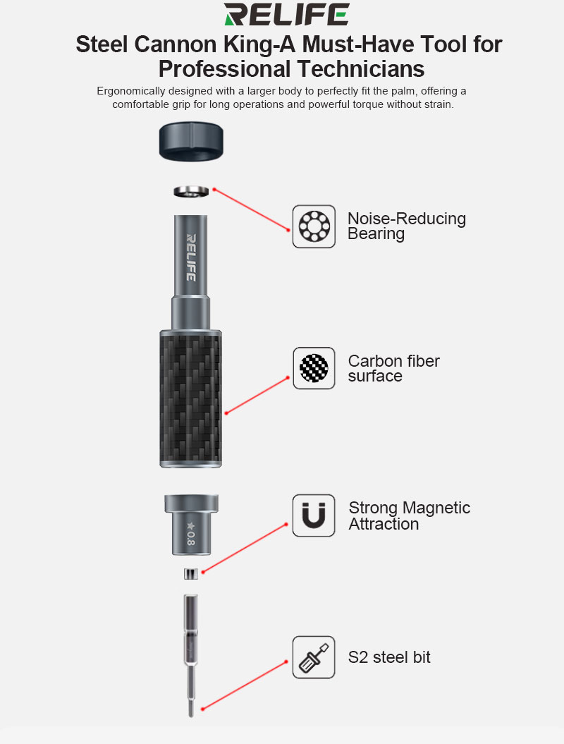 Crafted for reliability and long-term use, the RL-729A ensures stable grip, strong torque, and precise screw control, making it a trusted choice for repair shops and hobbyists alike.