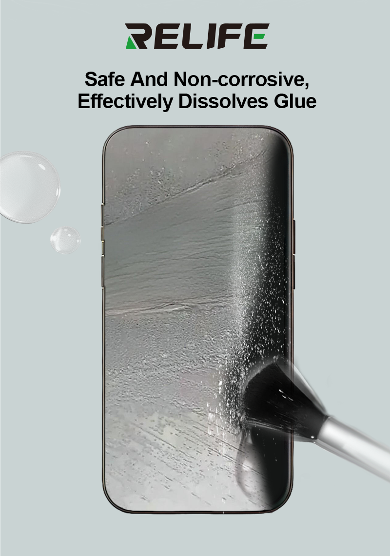 The RELIFE RL-8333 LCD Repair Adhesive Remover is a high-performance chemical solution specially developed for removing stubborn adhesive residues during mobile phone LCD repair and refurbishment. Formulated for professional use, it efficiently dissolves OCA glue, frame adhesive, polarizer residues, and sticky contaminants without damaging the LCD surface.
