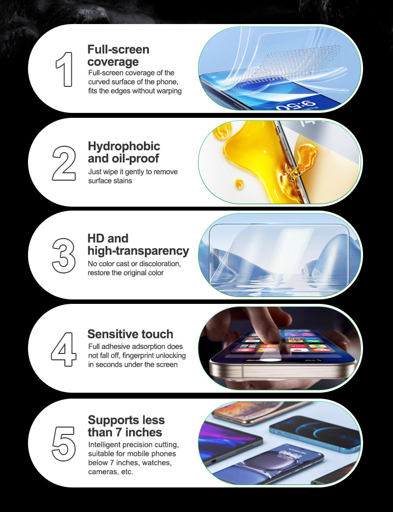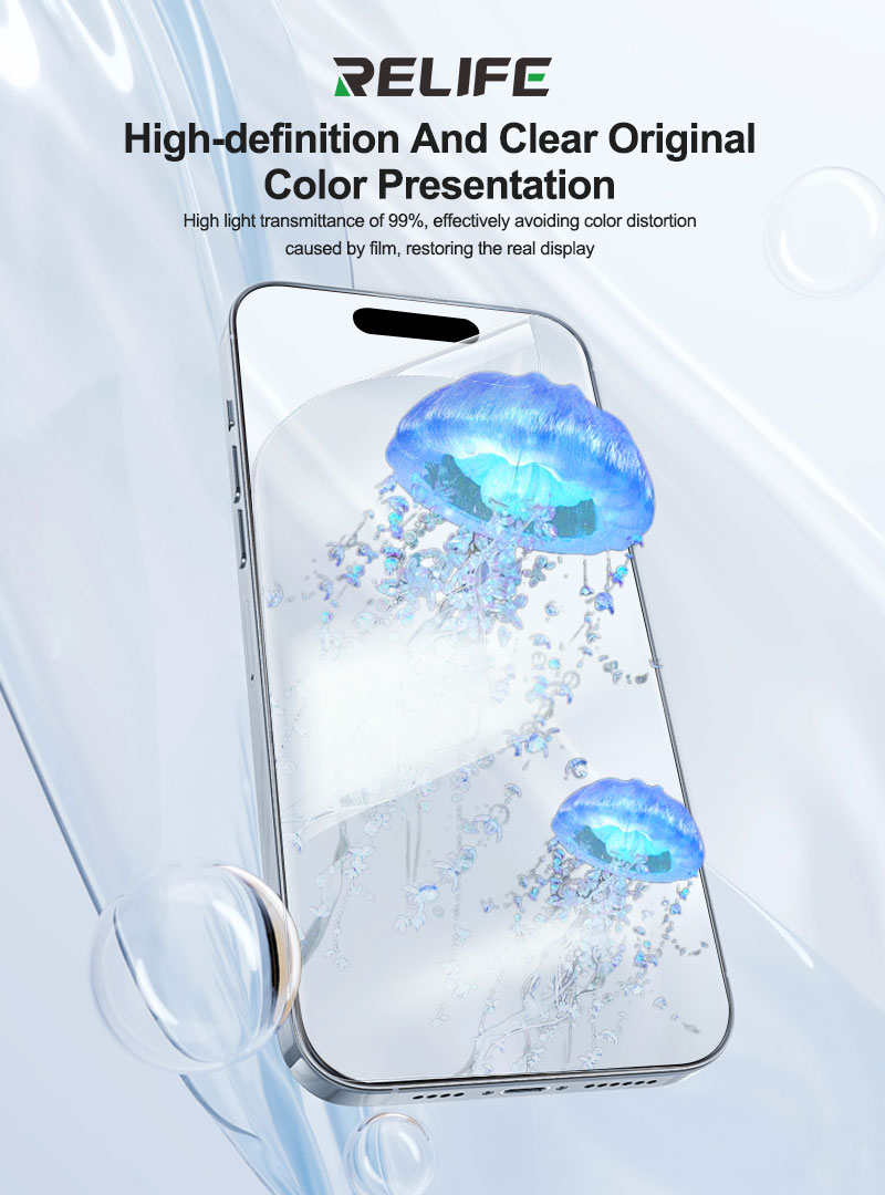 Protect your phone without the bulk. The Relife GF-9 Full Screen HD TPU Hydrogel Film is an ultra-thin, flexible TPU (hydrogel) protector that covers edge-to-edge, restores minor scratches with self-healing technology, preserves original touch sensitivity, and gives brilliant HD clarity. Ideal for modern curved and bezel-less displays.