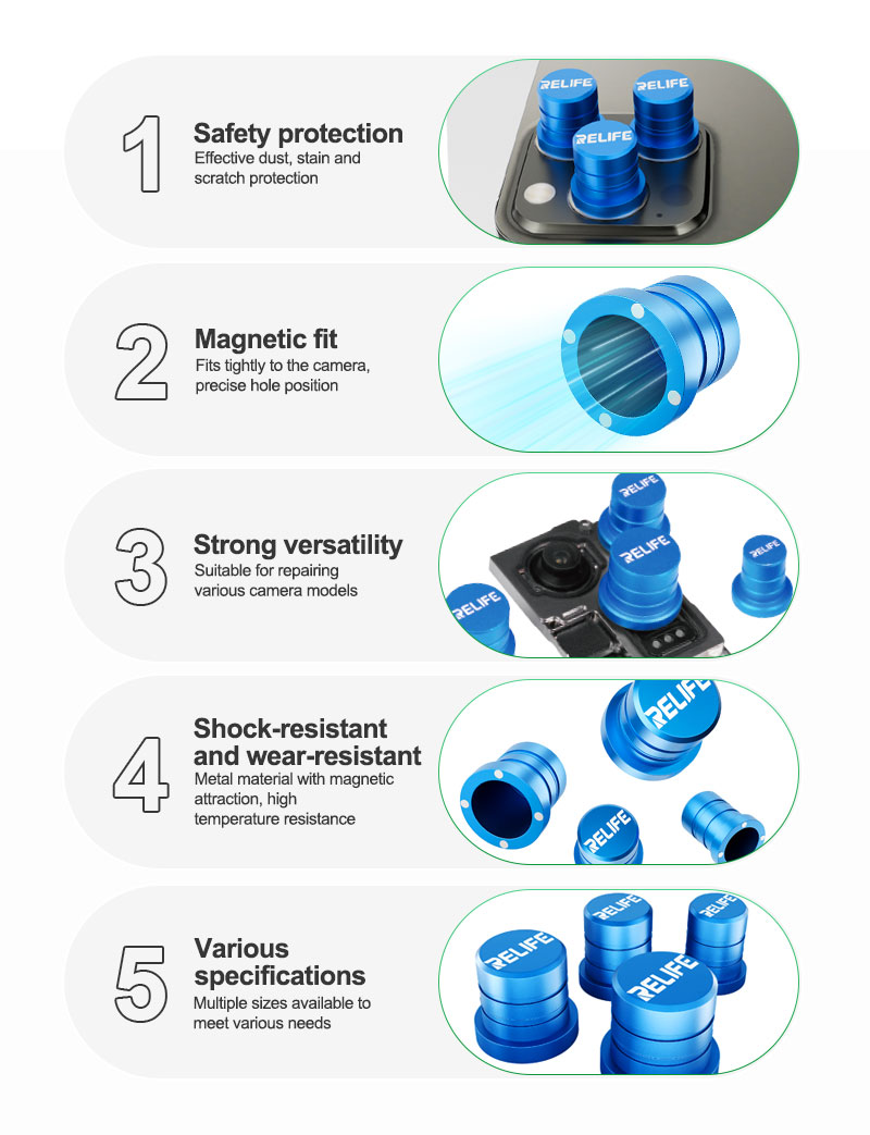 With multiple sizes included, the RL-099 is compatible with a wide range of smartphone models. Its magnetic design ensures quick attachment and stable placement, making it ideal for display testing, touch inspection, UI checking, and long repair sessions.