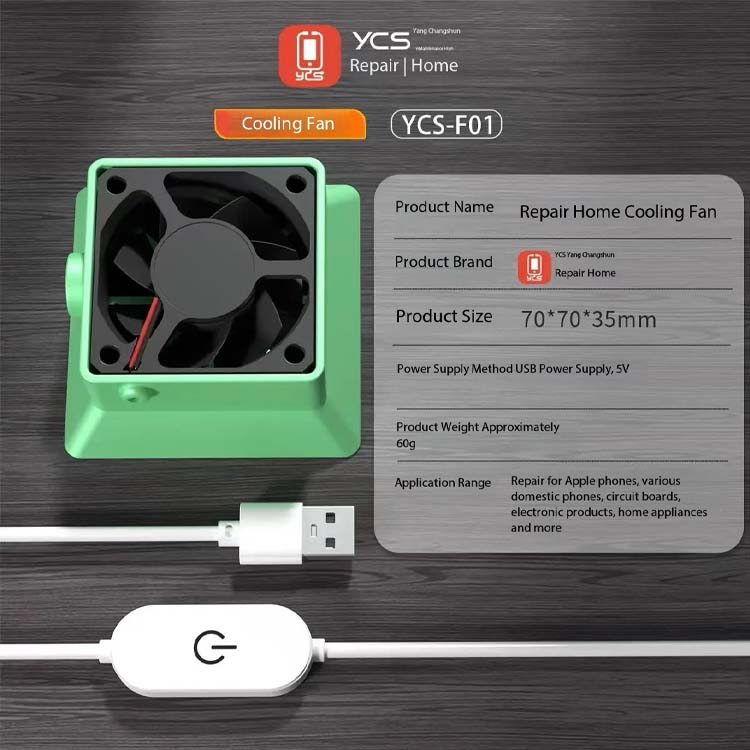 YCS F01 Fast Cooling Brushless Motor Fan is engineered to deliver powerful airflow and rapid cooling, making it an essential tool for mobile phone repair, soldering, and other electronic maintenance tasks. Built with a durable brushless motor, this fan ensures long service life, quiet operation, and stable performance. Its high-speed airflow quickly cools down heated components, preventing overheating and protecting sensitive IC chips during soldering or rework.